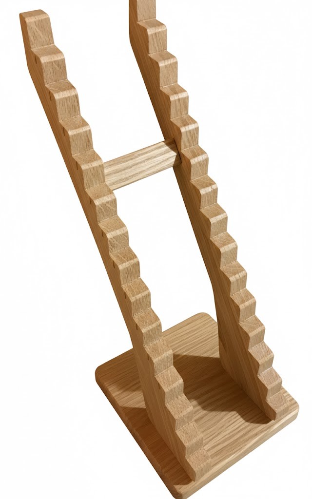 Le chêne se distingue par son grain marqué et sa densité exceptionnelle. Ce porte-couteaux n'est pas qu'un simple accessoire de rangement ; c'est une pièce d'ébénisterie qui apporte une présence chaleureuse et authentique à votre vitrine, votre bureau ou votre atelier.