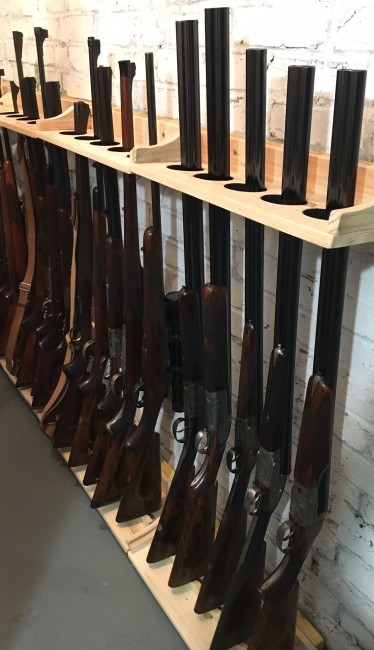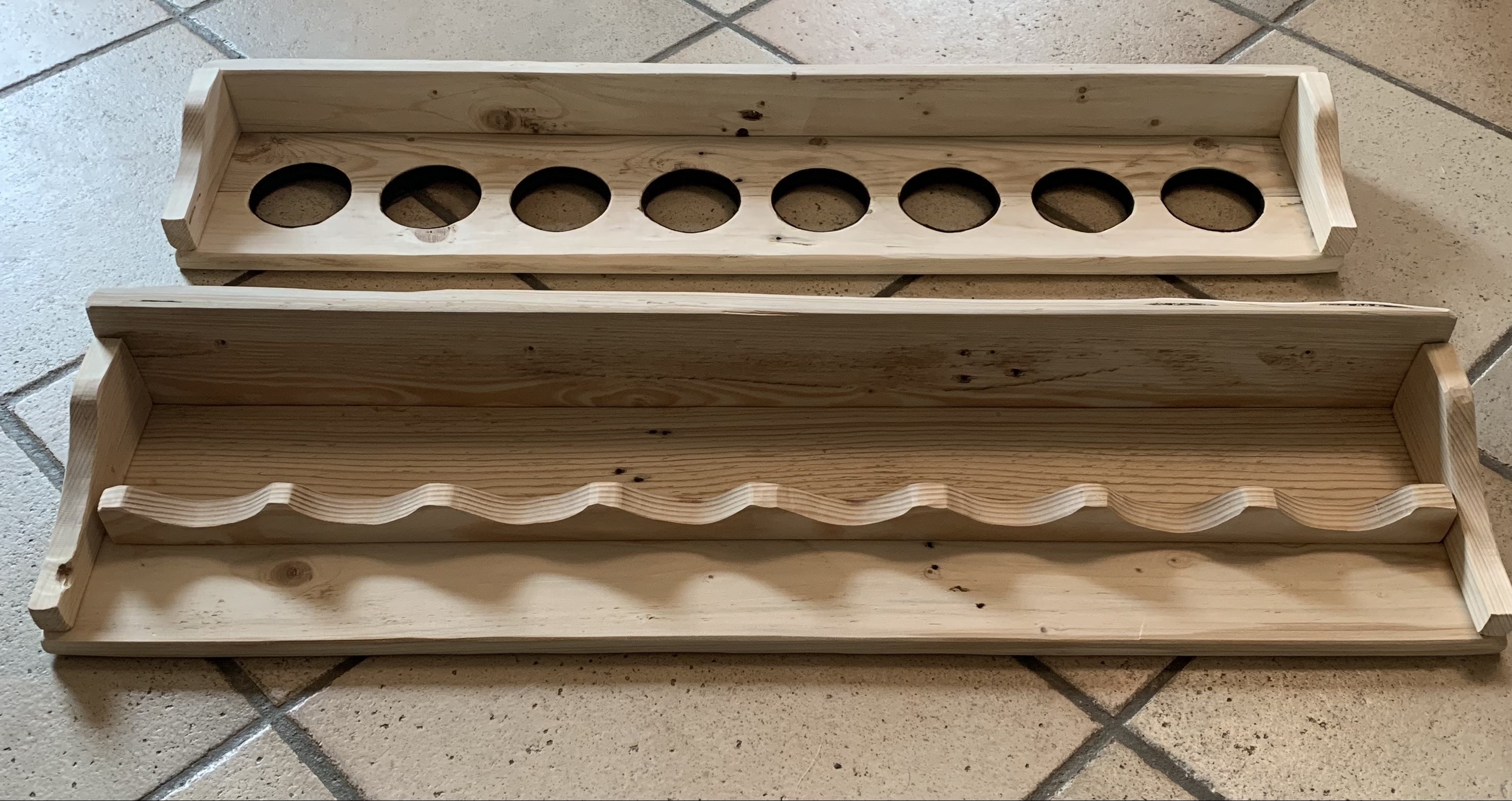 Supports en bois façonnés à la main pour couteaux et fusils d’exception.