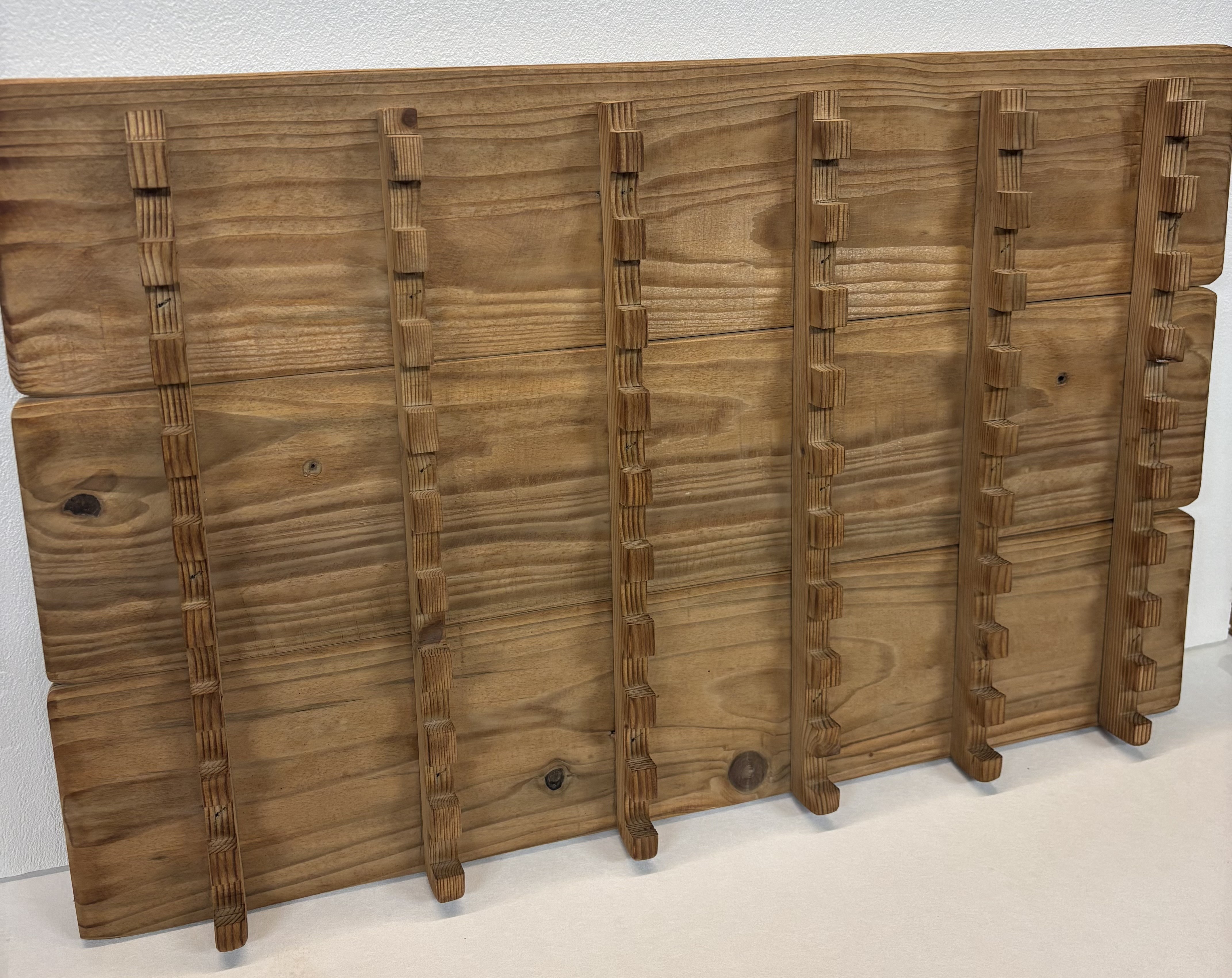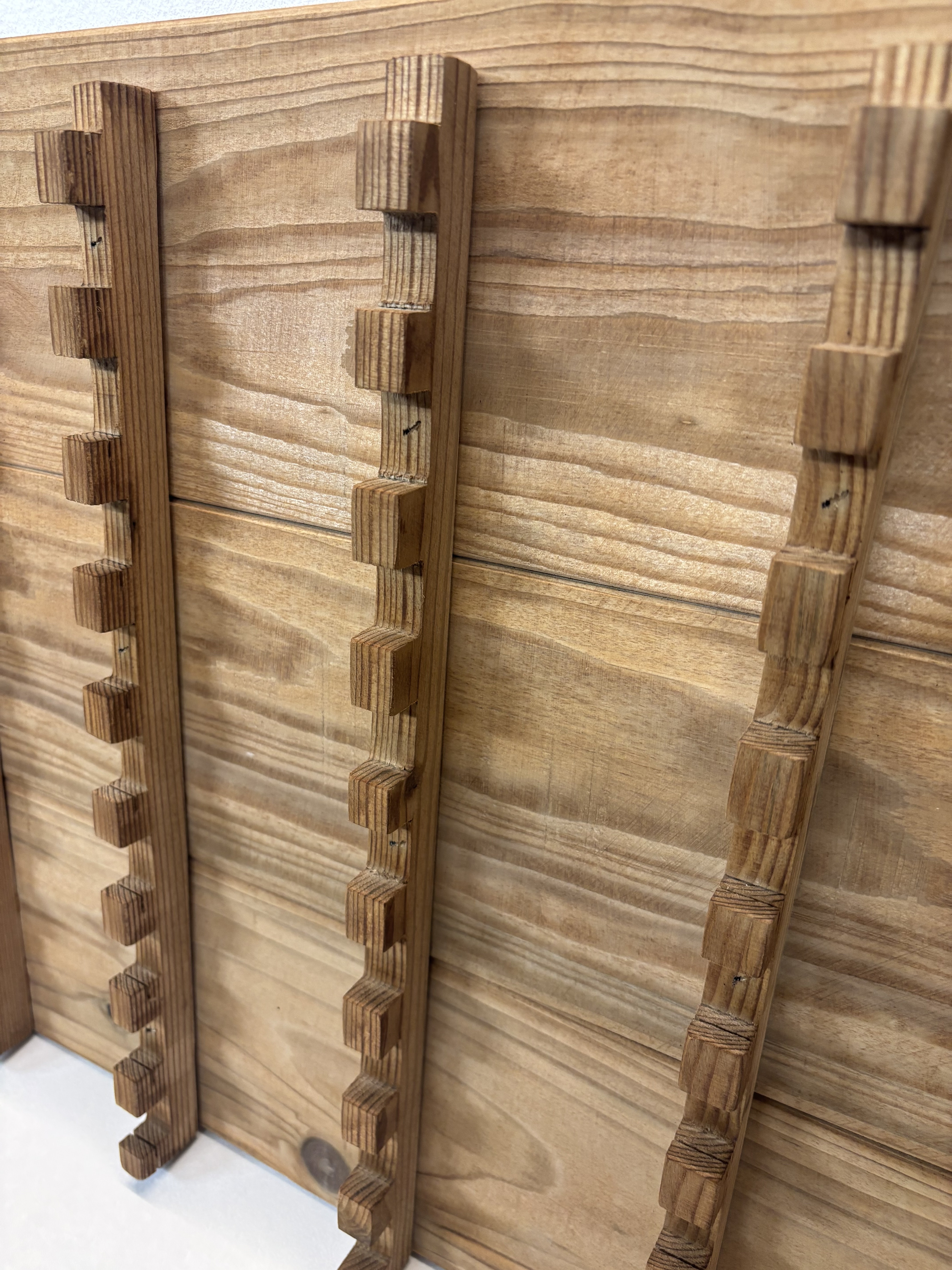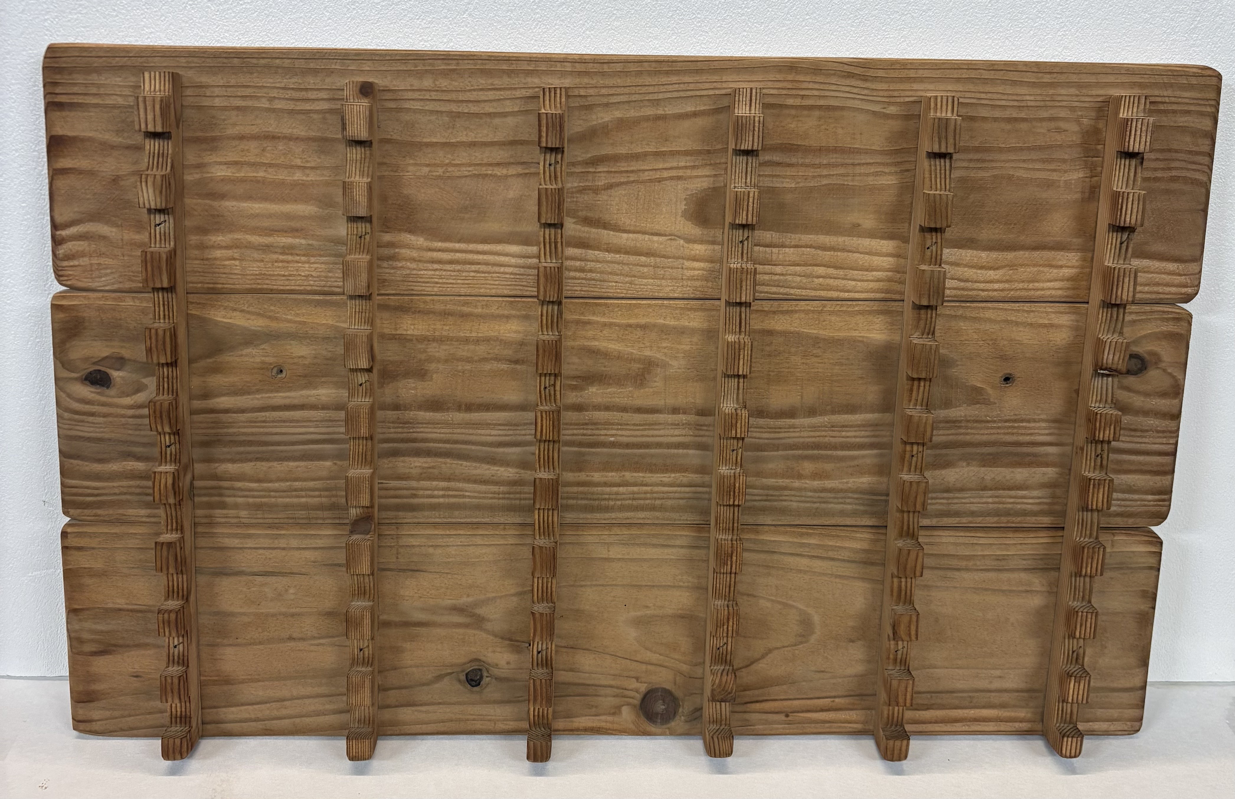 Optimisez l'exposition de vos plus belles pièces avec ce présentoir mural en bois de sapin vieilli, spécialement conçu pour les passionnés de coutellerie.