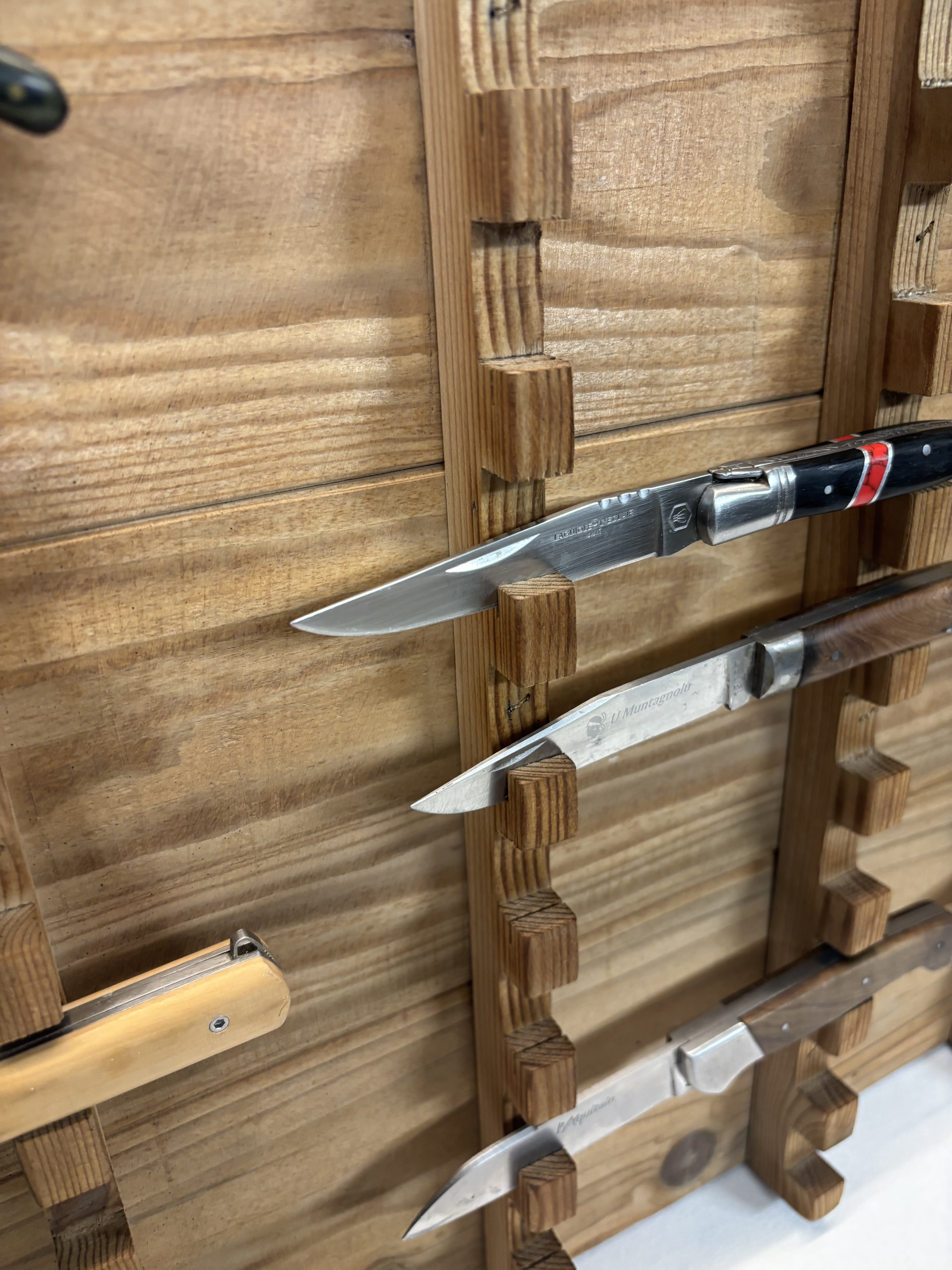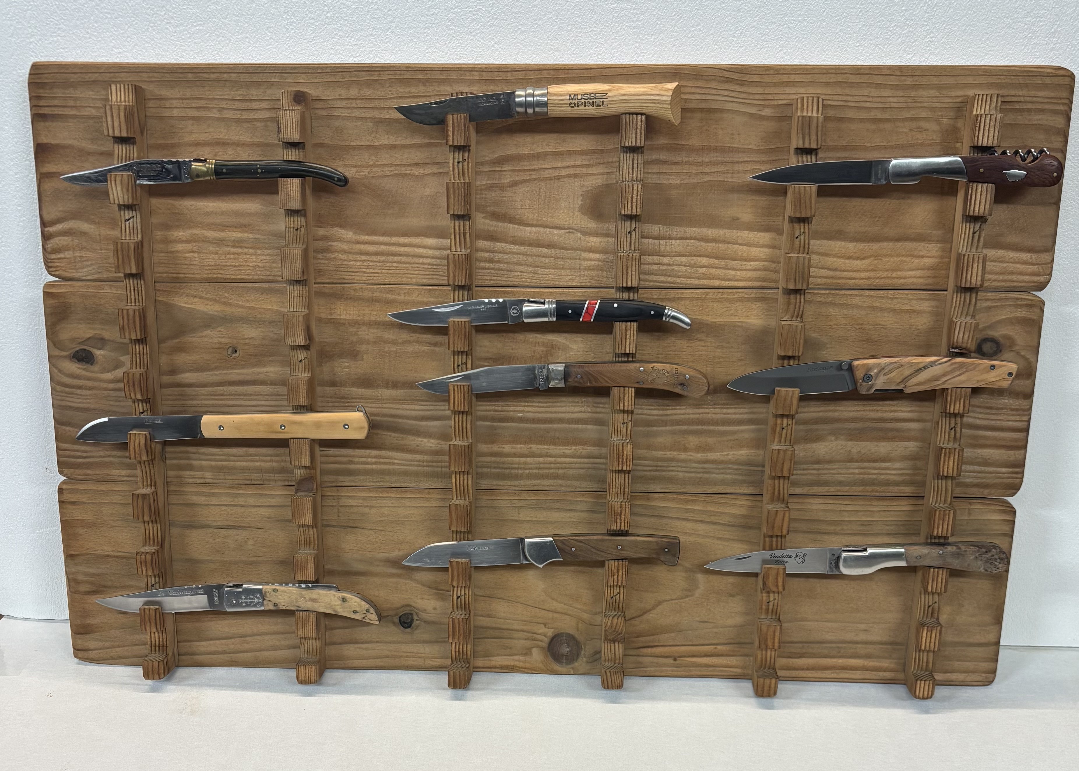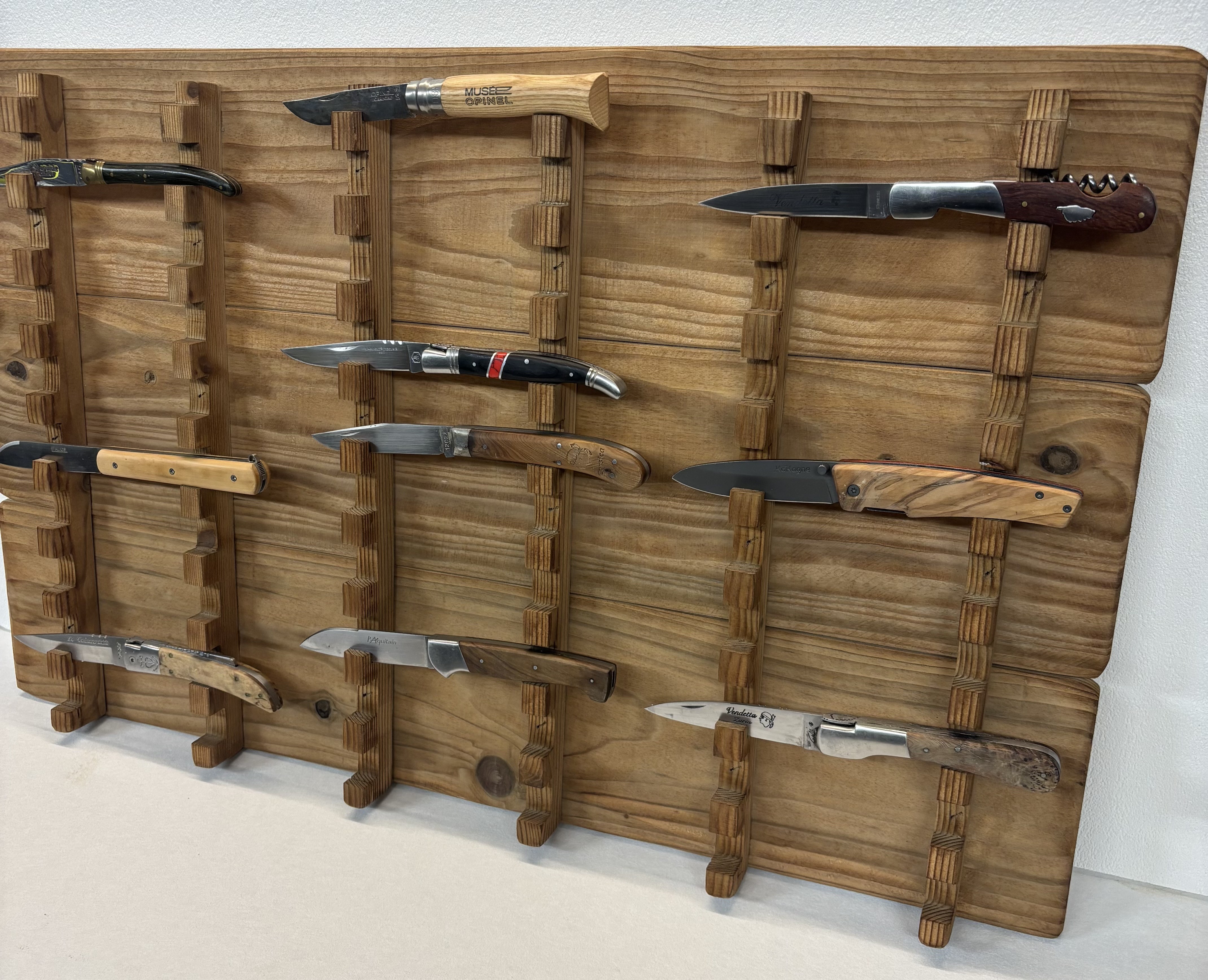 Que vous collectionniez des couteaux Laguiole, des Opinel ou des modèles artisanaux, ce support de rangement pour 30 couteaux transforme votre collection en une véritable décoration murale.