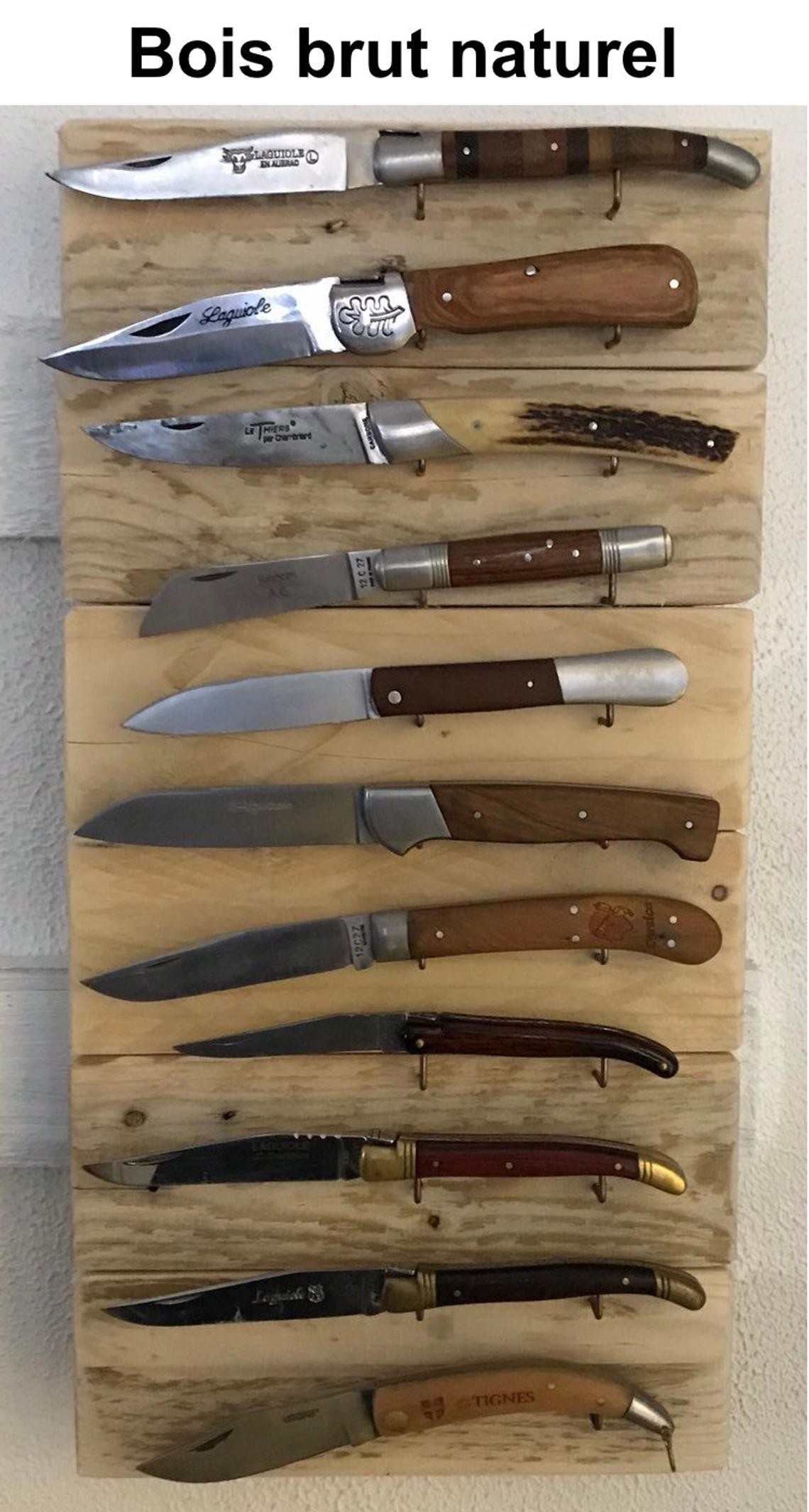 Présentoir en bois de Sapin mural 11 couteaux support métal