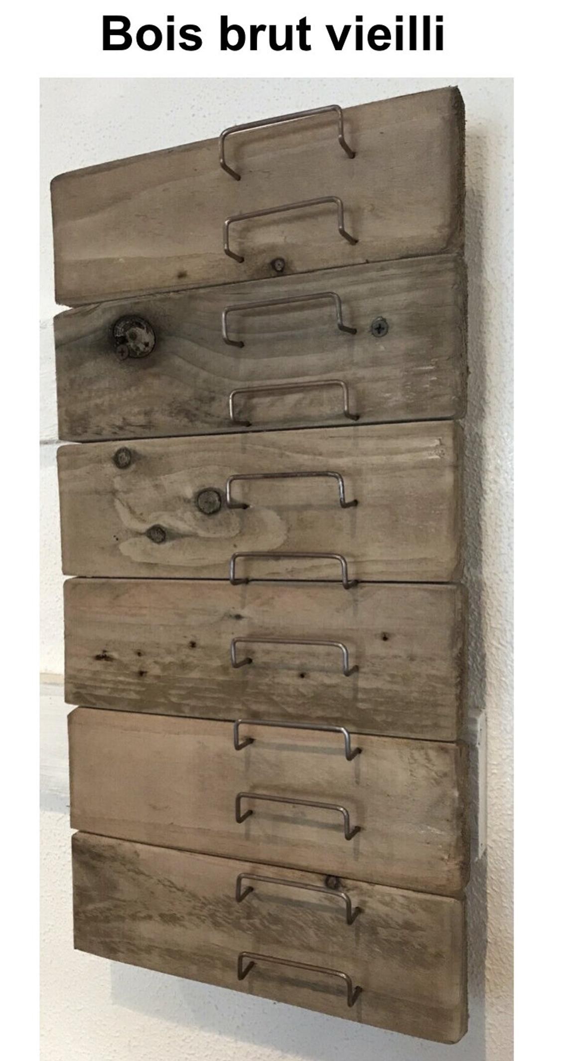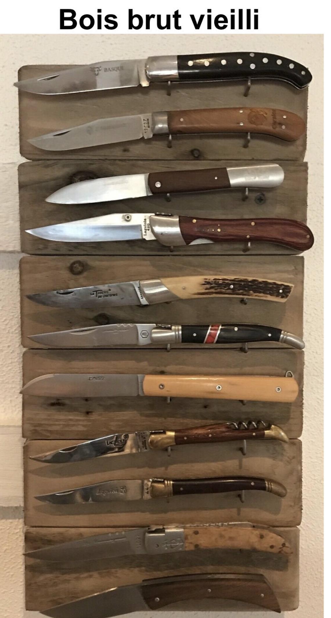 Présentoir en bois de Sapin vieilli mural 11 couteaux support métal