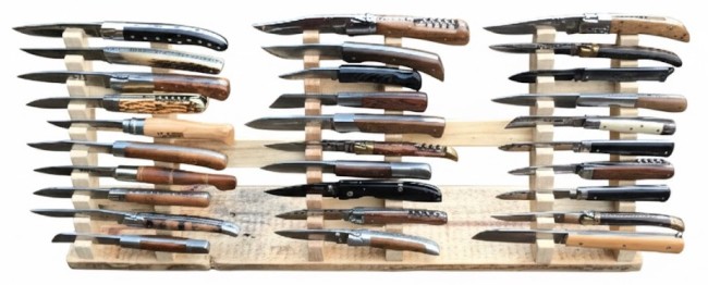 Présentoir en bois de Sapin vieilli mural 30 couteaux