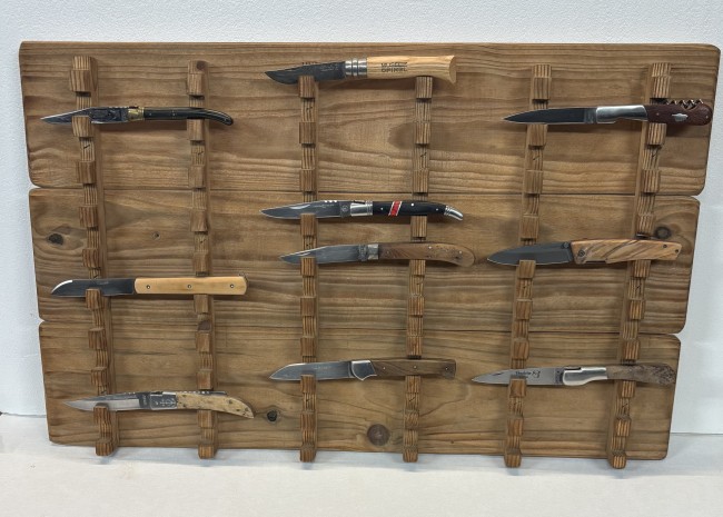 Présentoir 10 couteaux en bois de sapin fixation mural